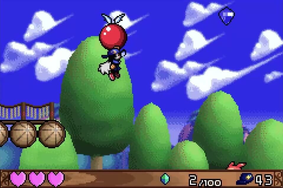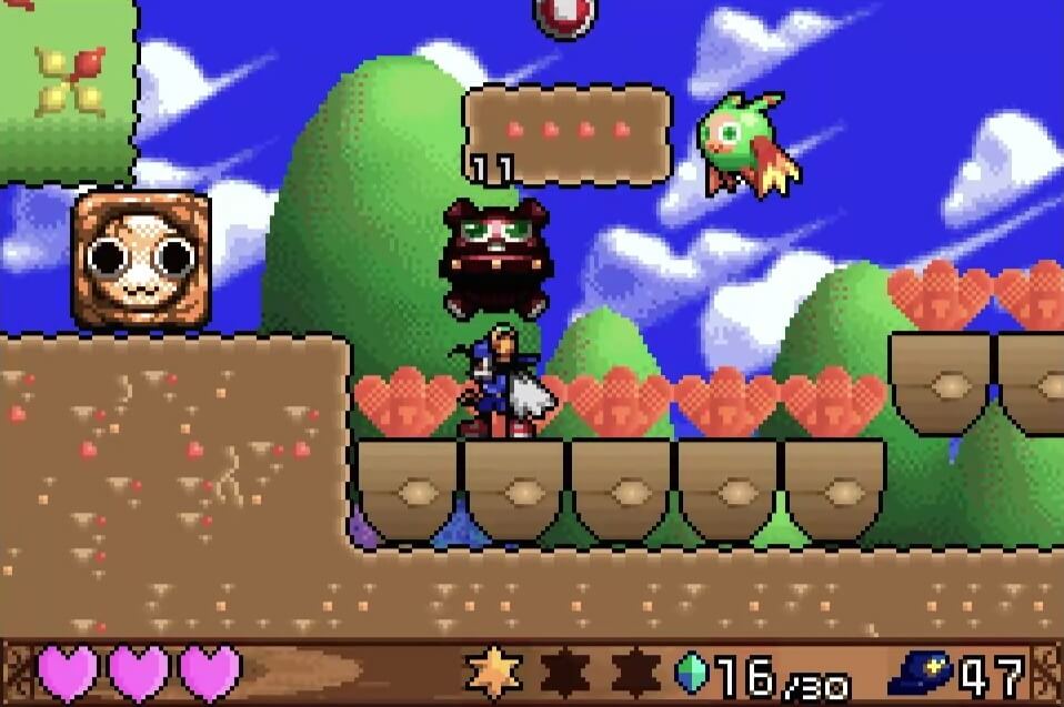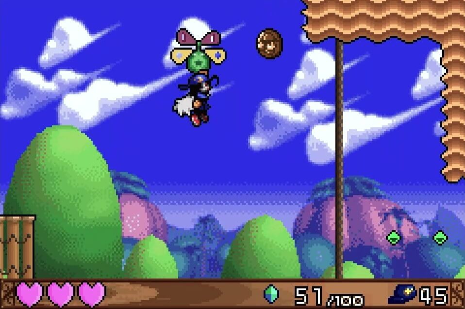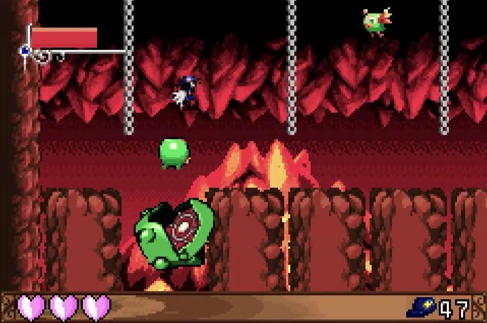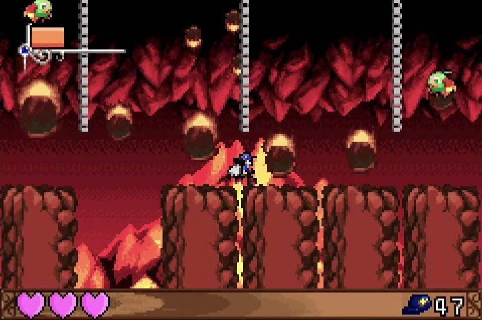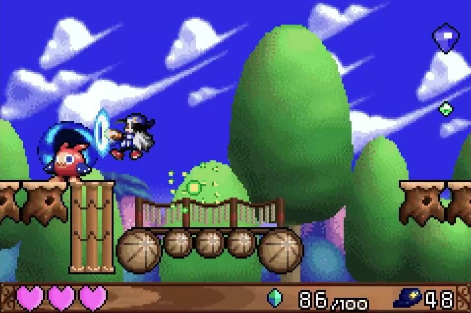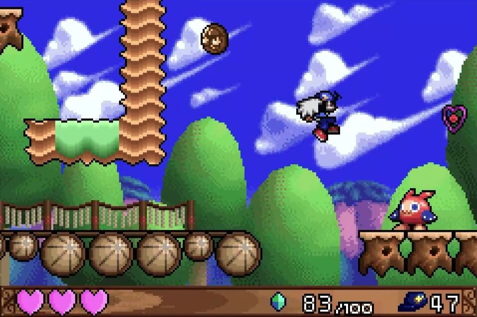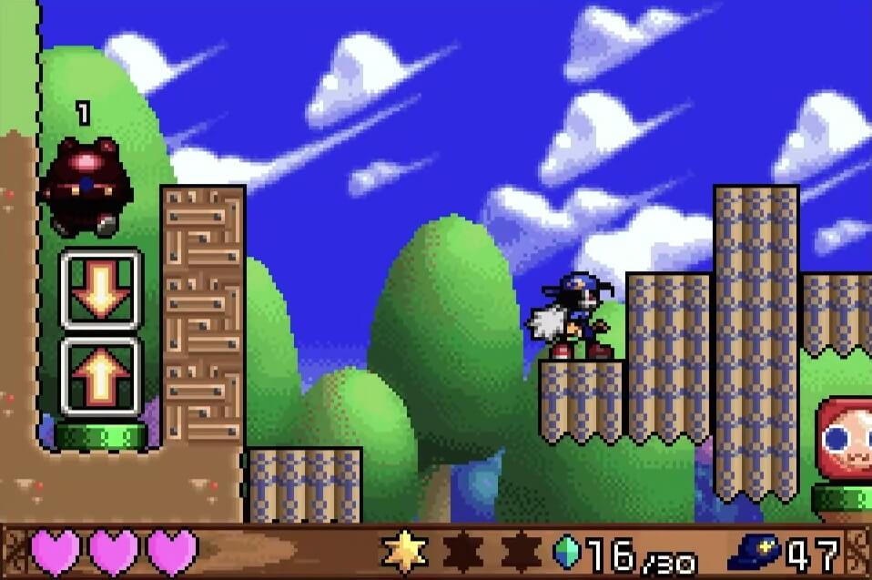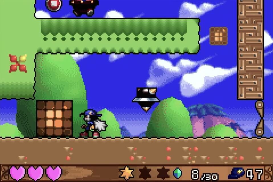 高い地点にある「夢のかけら」は、取るのは簡単だが着地に注意が必要。この時点では「敵が左方向に歩いている」のが見えるが、飛ぶと見えなくなるので注視してしておこう!