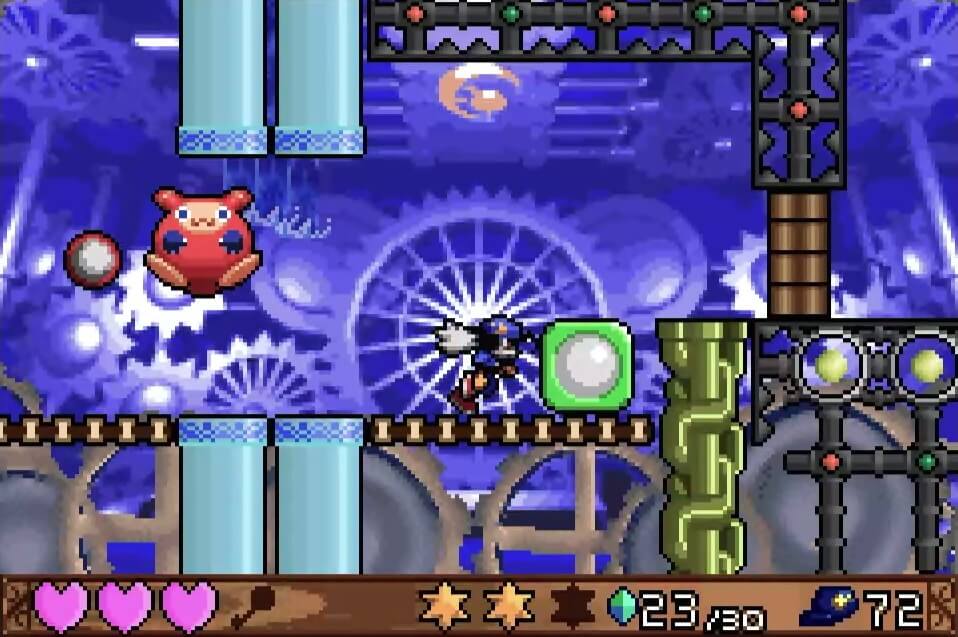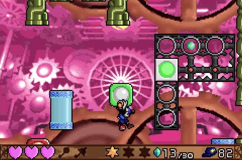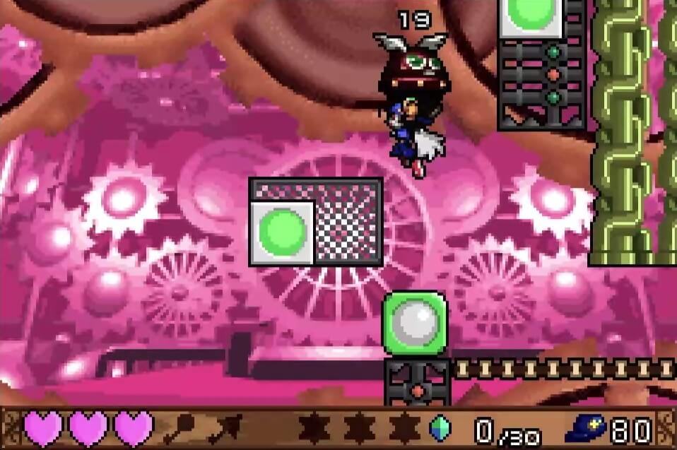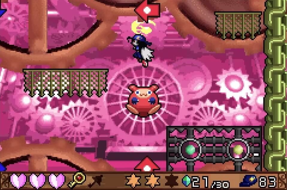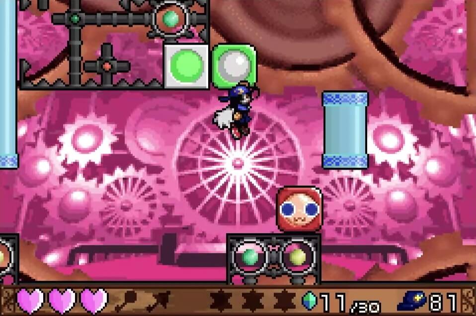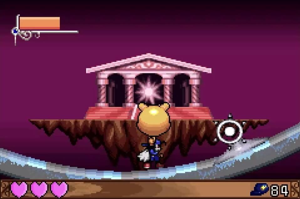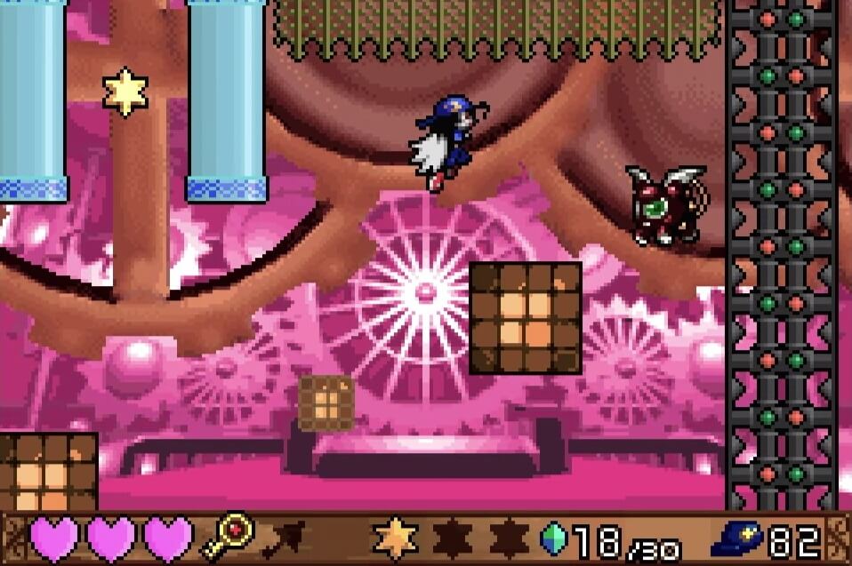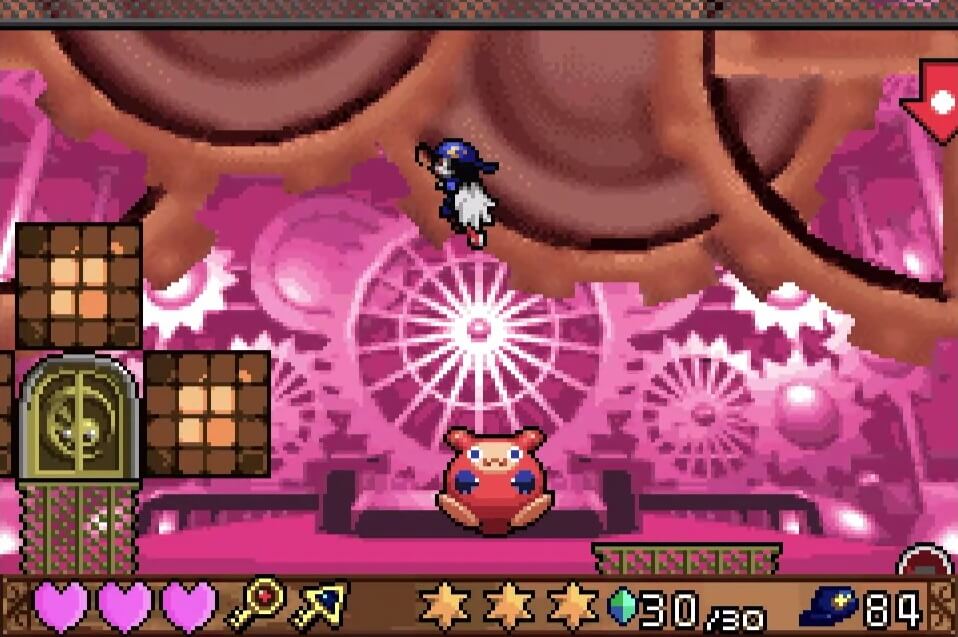 月のかけらを入手後、落ちる際に「磁石ブロック」を落としておくこと。忘れたらハコに密着して「風玉+方向キー」で抜けられるので、ハコを窪みに落とさない限り詰みはない。