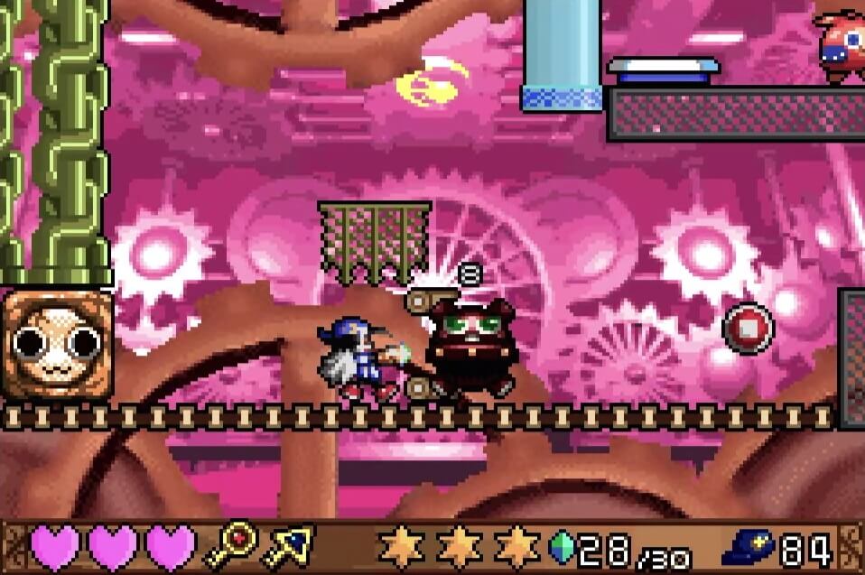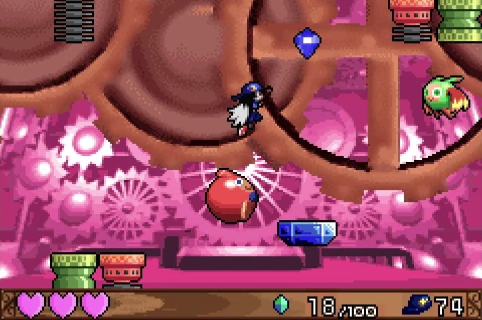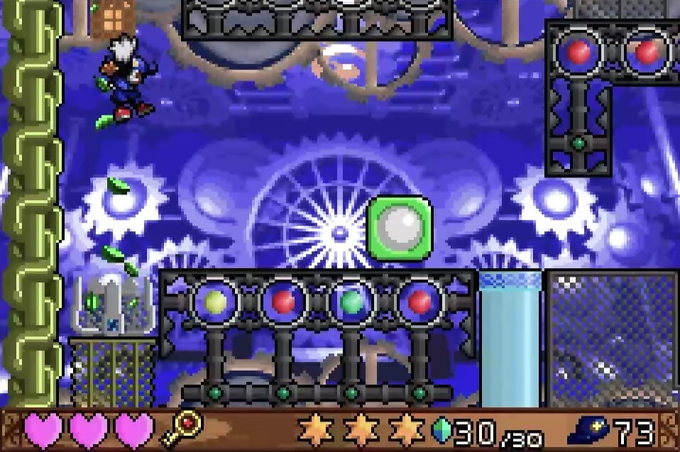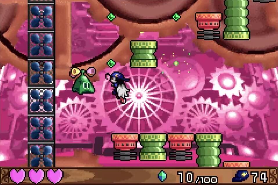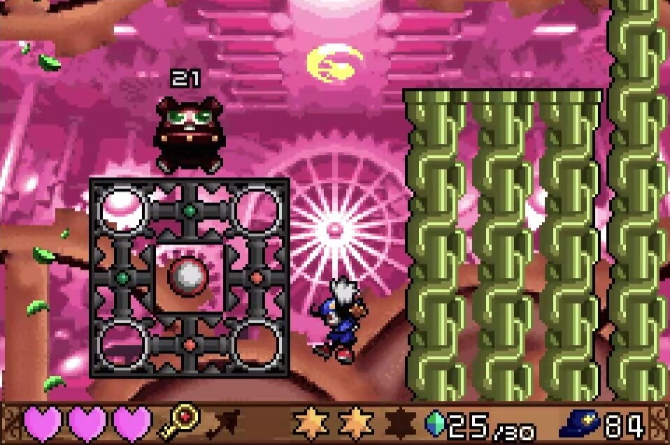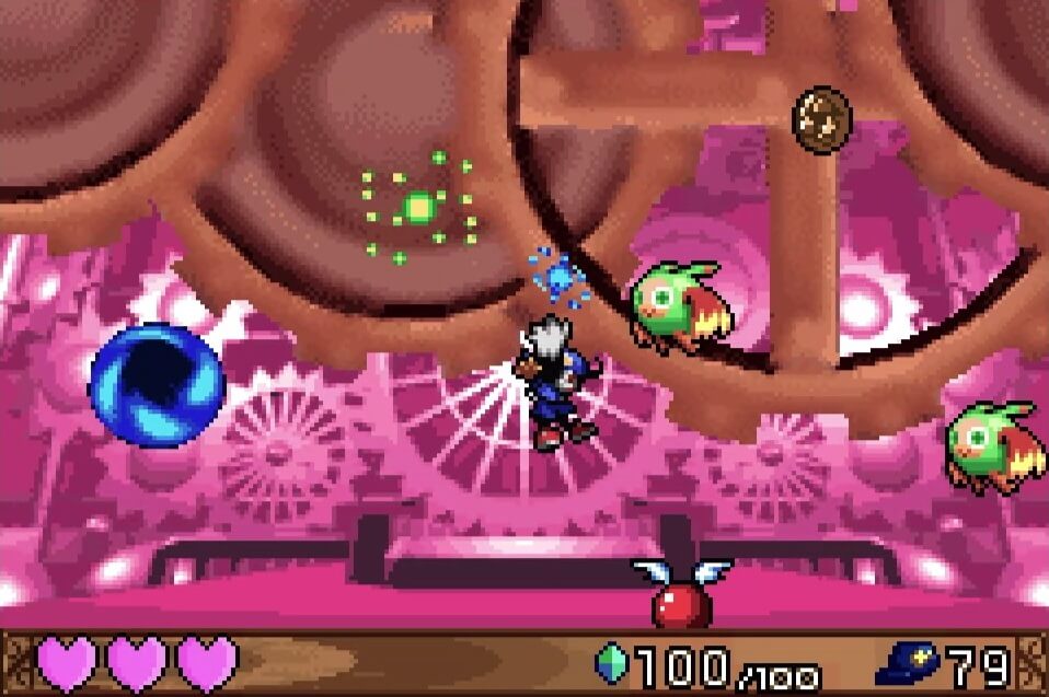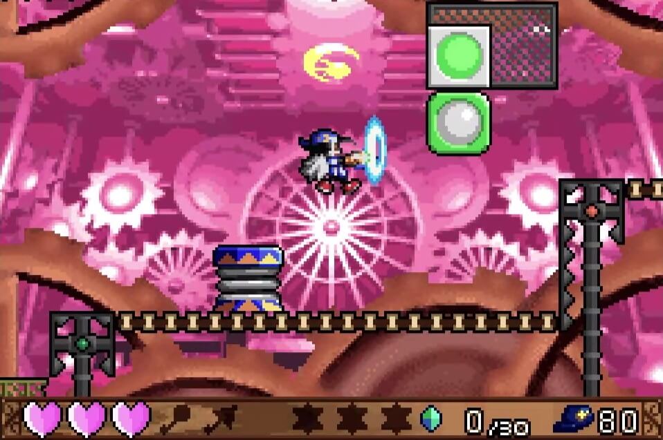 月のかけらを入手後、落ちる際に「磁石ブロック」を落としておくこと。忘れたらハコに密着して「風玉+方向キー」で抜けられるので、ハコを窪みに落とさない限り詰みはない。