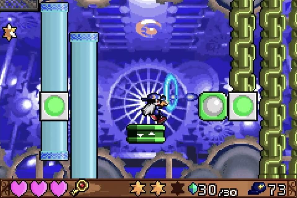 2段目の「月のかけら3」を先に入手しておくと楽。1段目のムゥは、交差するように飛び越え。2段目はムゥのスイッチ待ちになるが、ここのロスは必至。落ちないように注意!