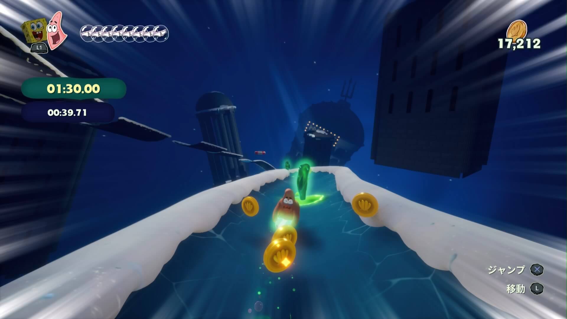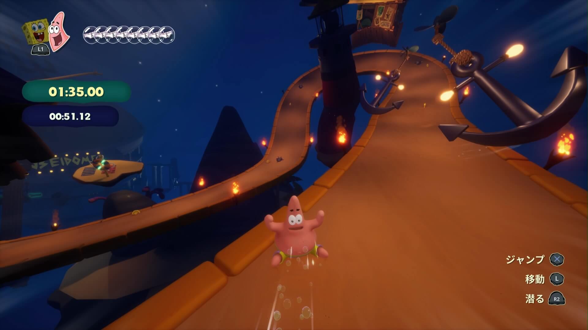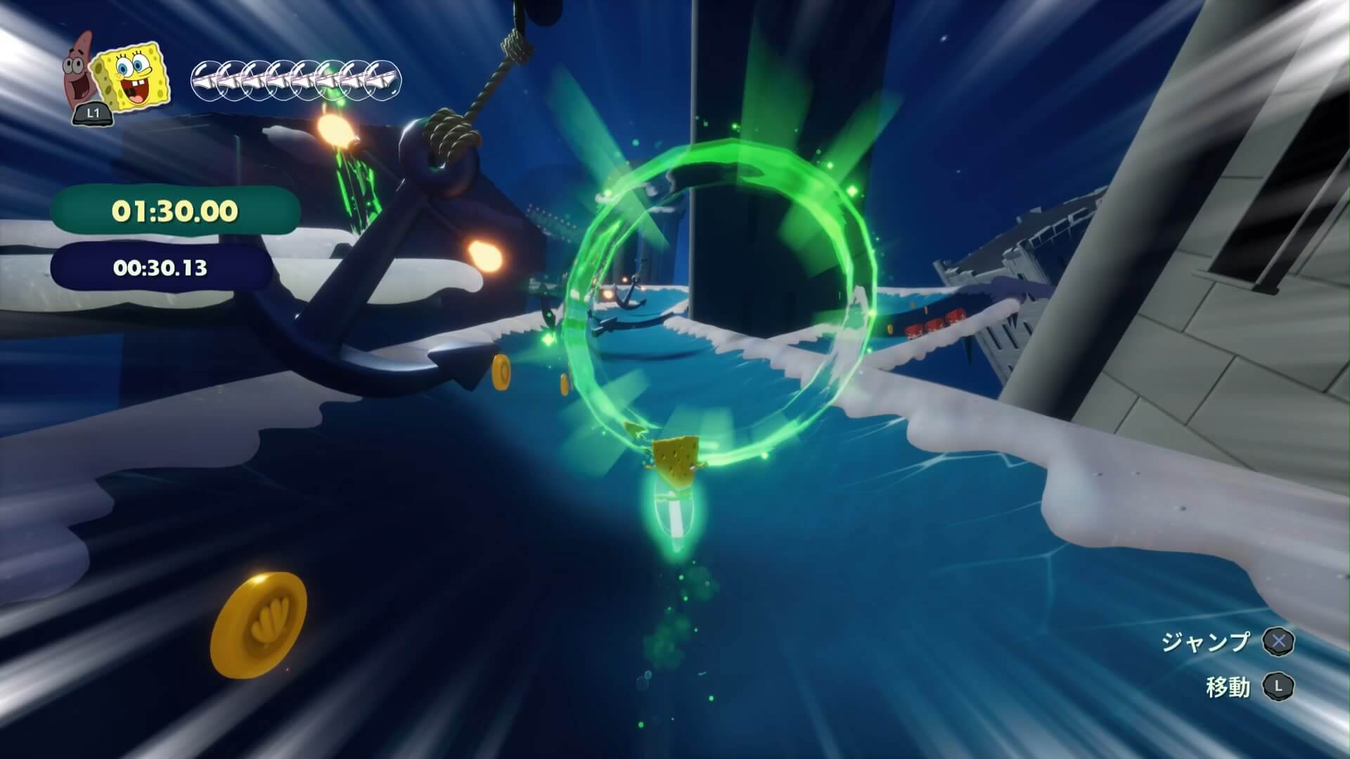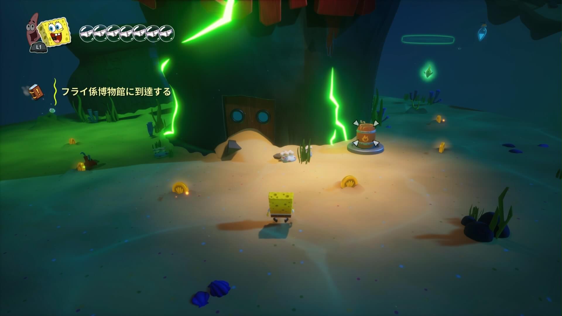 動けなくなった「市民を4人助ける」と獲得でき、キンギョ・アイランドに1人・ビキニタウンで3人となっており、宝箱の入手条件にもなっている。ここでは「巻貝通りのおばけボードスライダー」の後、3人が地面に埋まっている。1人は岩で潰されているので「爆弾」で壊して助けてあげよう!