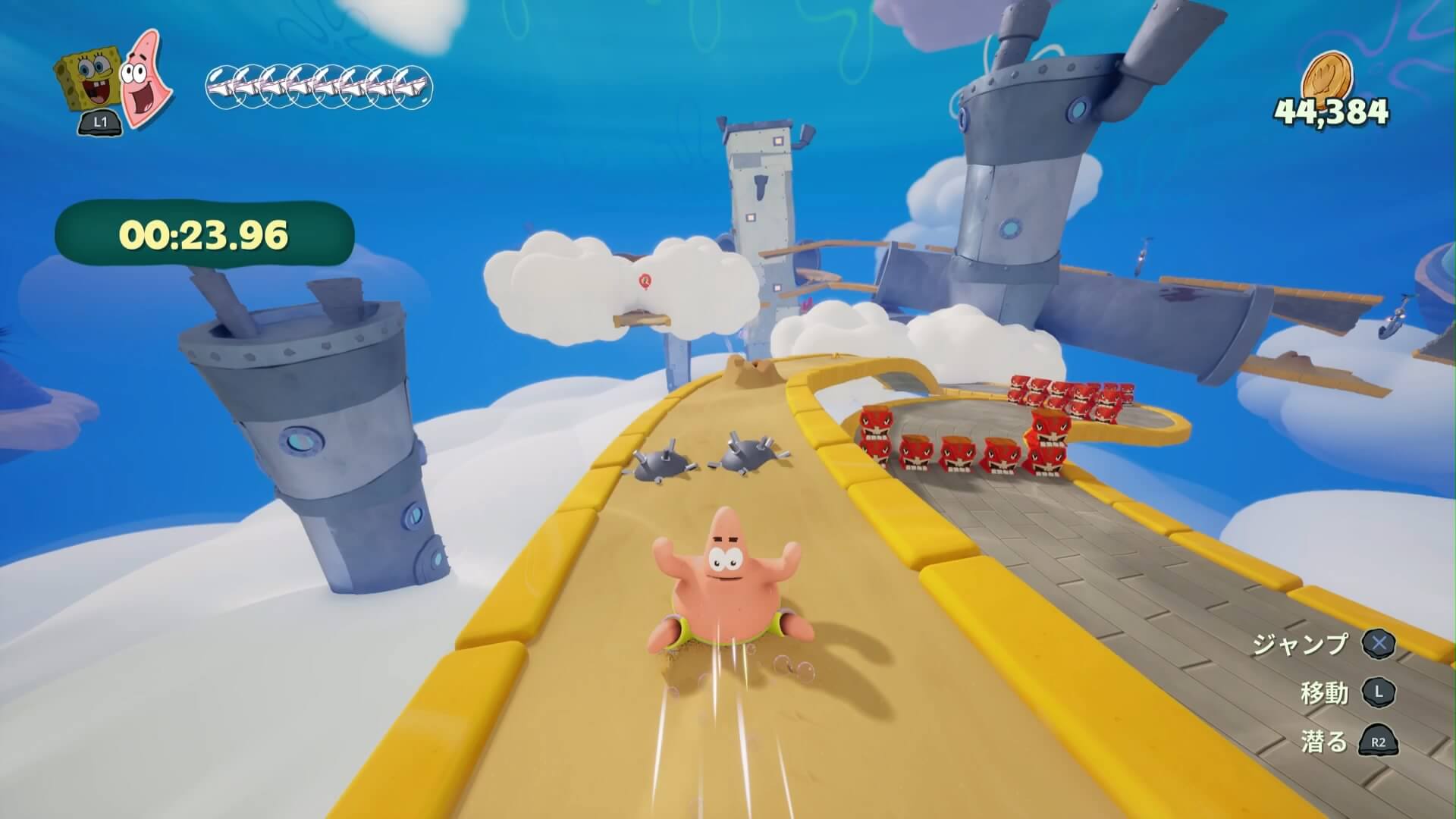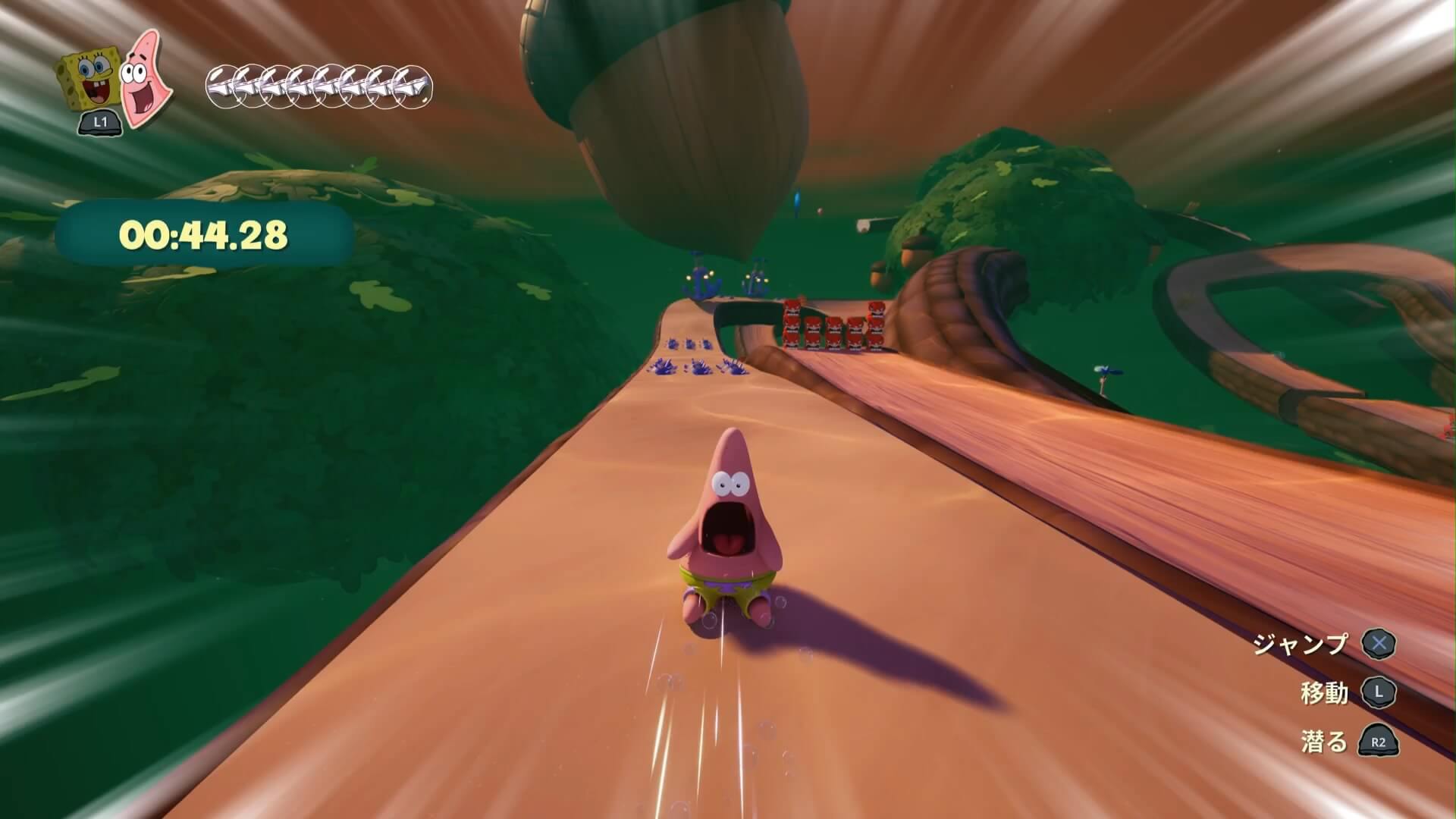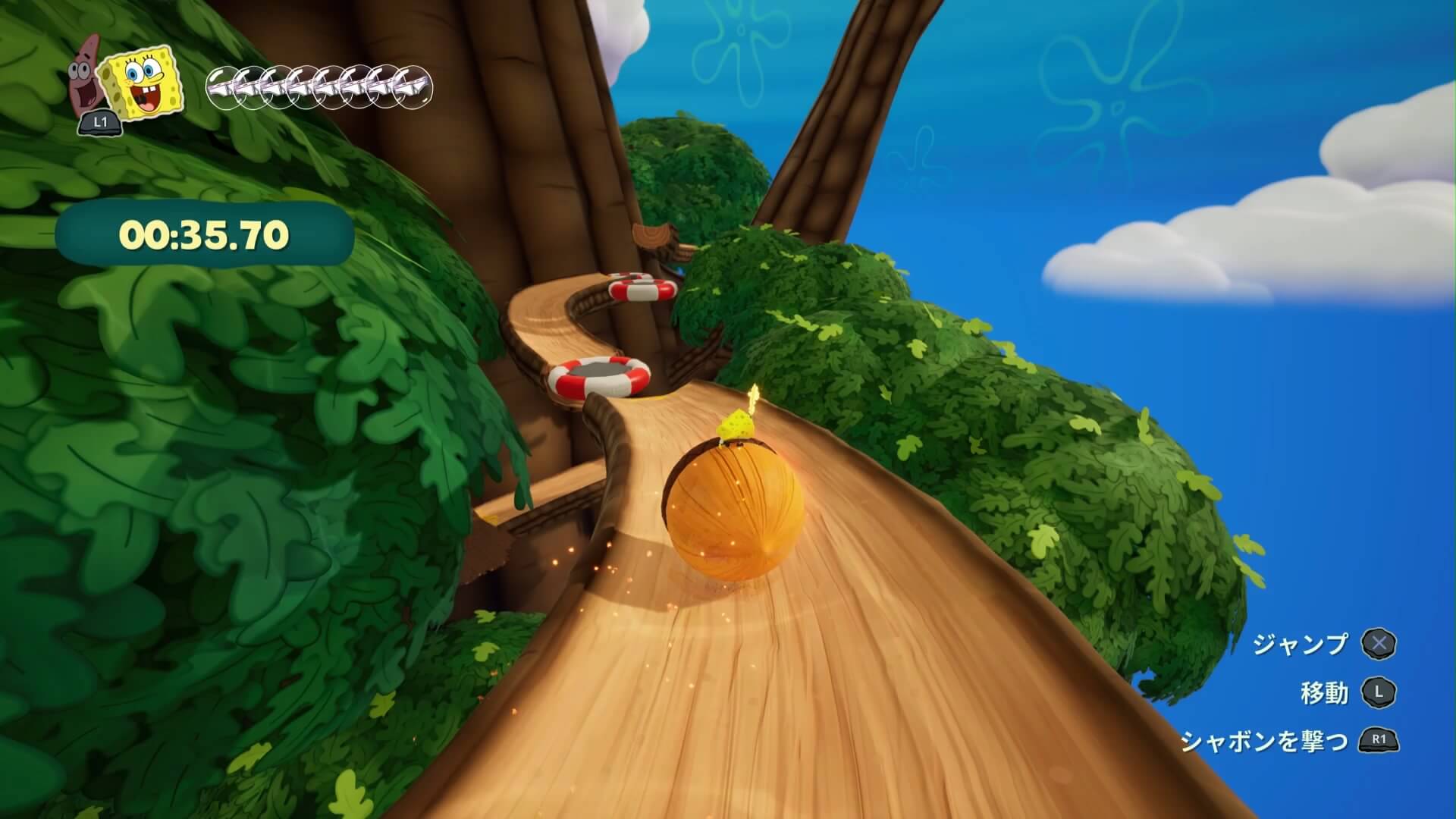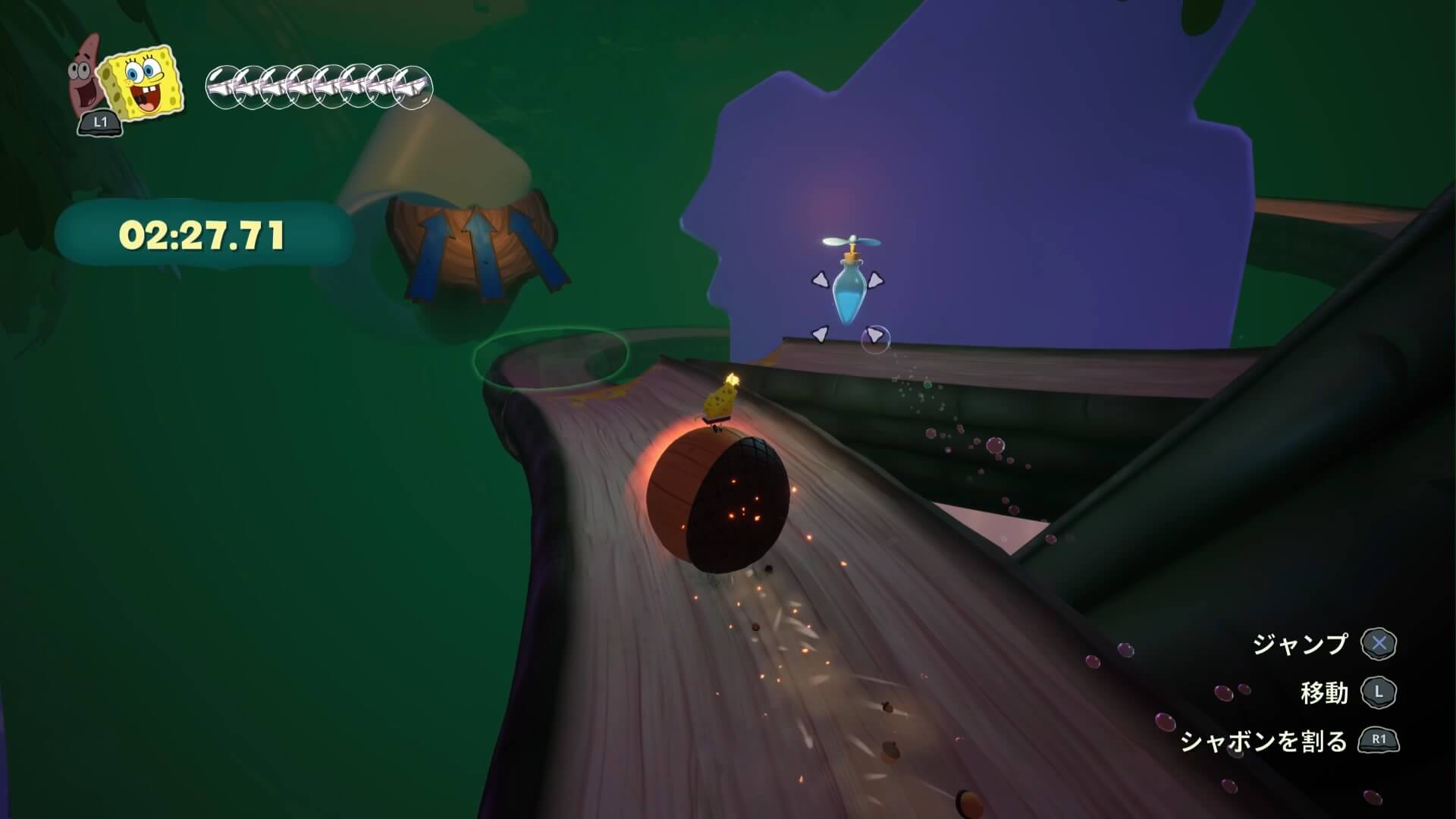 魔法のランタンで「浮き輪パッドを実体化」させたら、あとは跳ねて転がるだけ。直線で速度が出やすいので「跳び越えに注意」しよう!