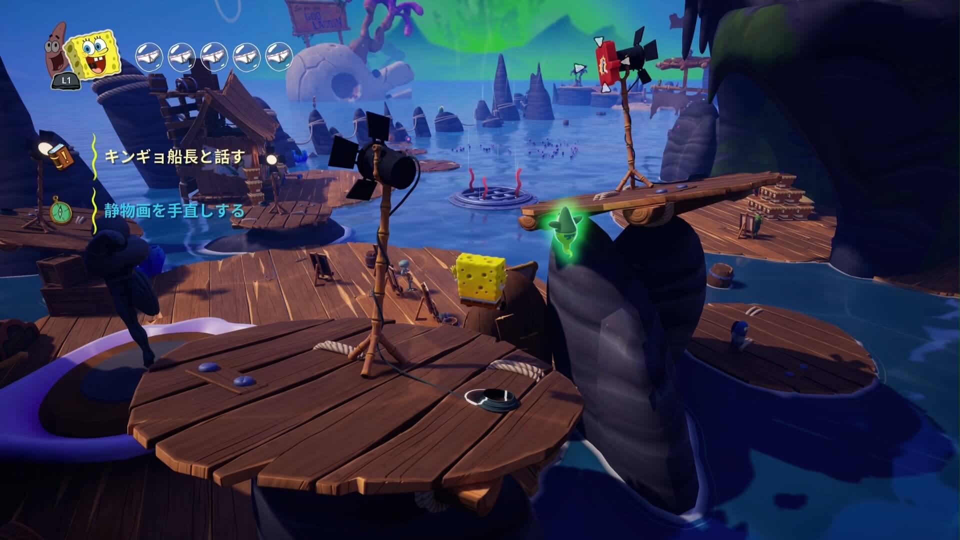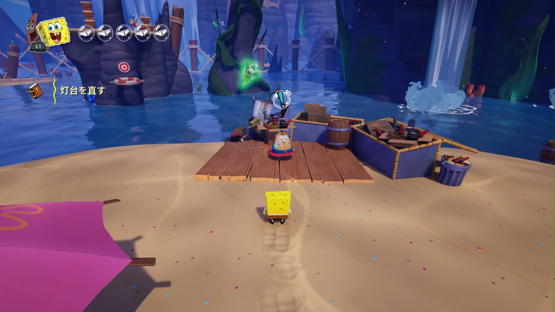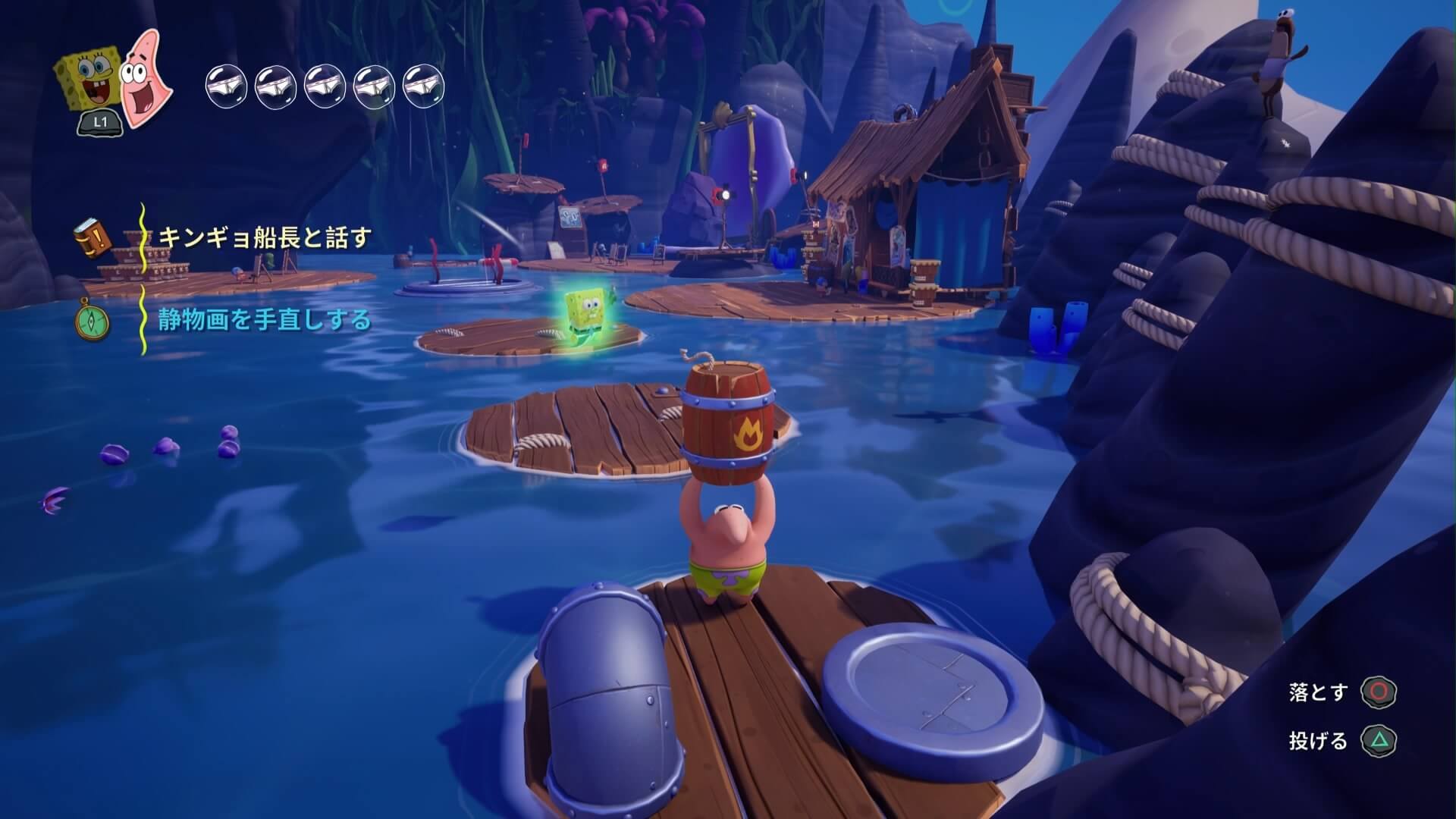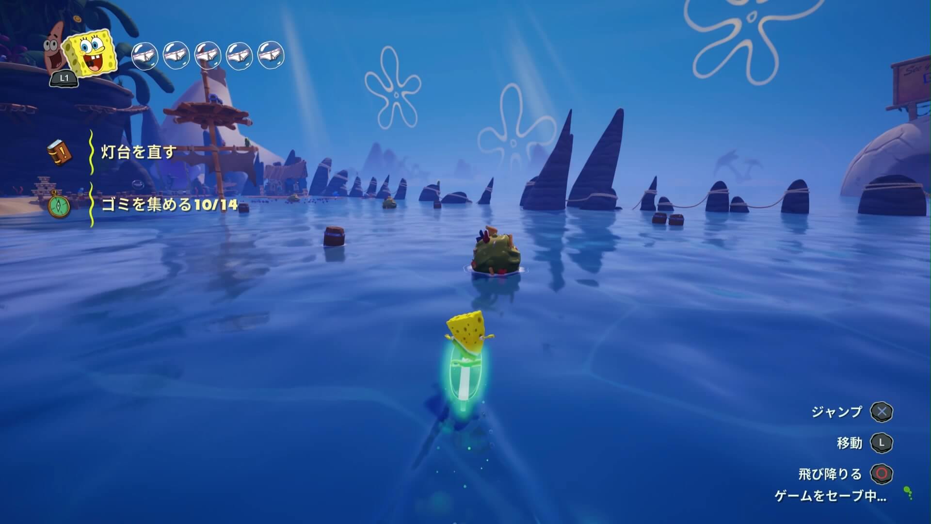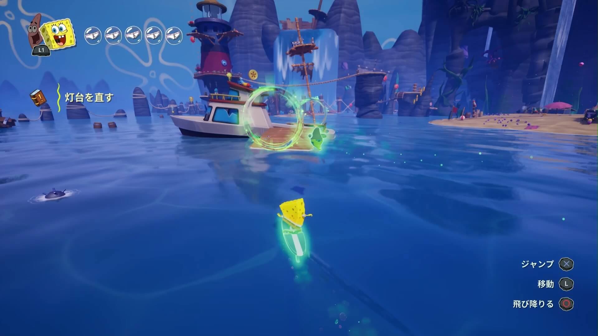 海上のゴミも7ヶ所。こちらは「おばけボード」で壊して回ろう!