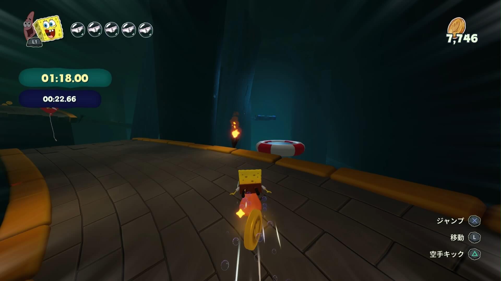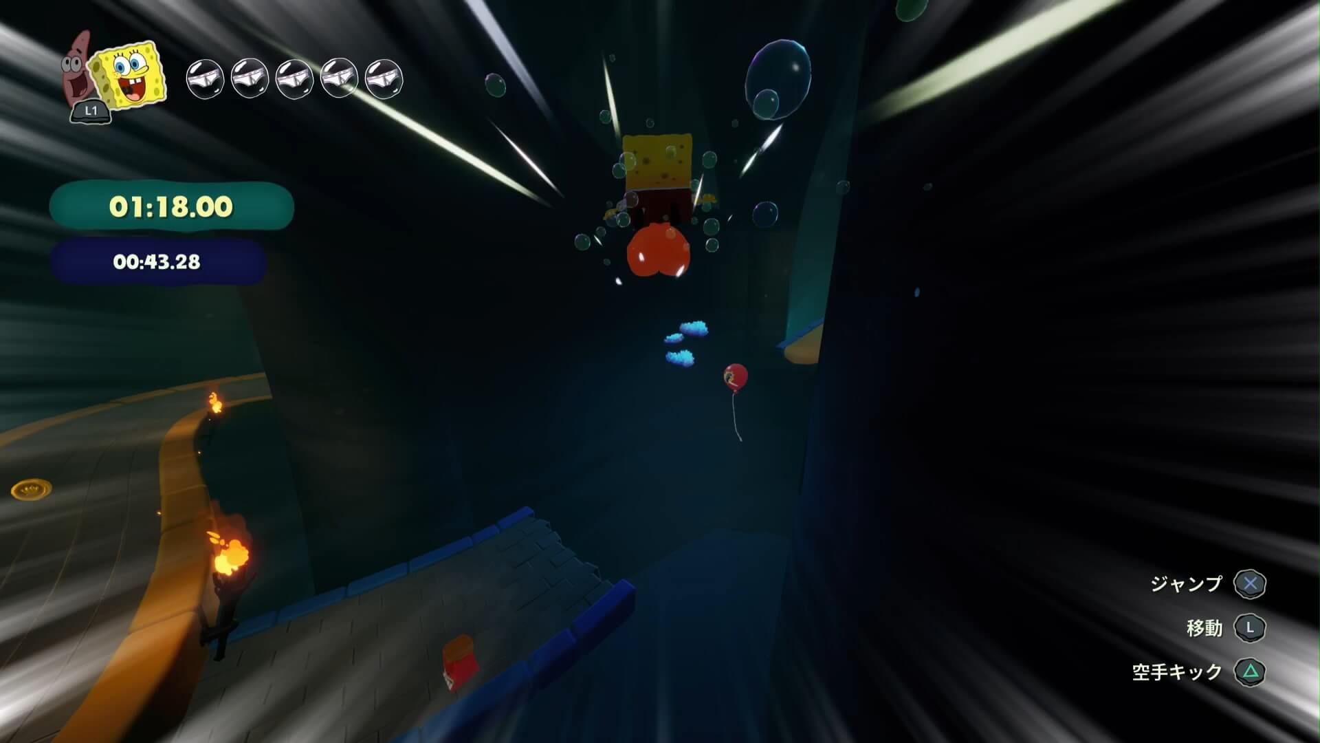 4ヶ所目の後、着地せずに「風船に空手キック」で大幅に短縮!
