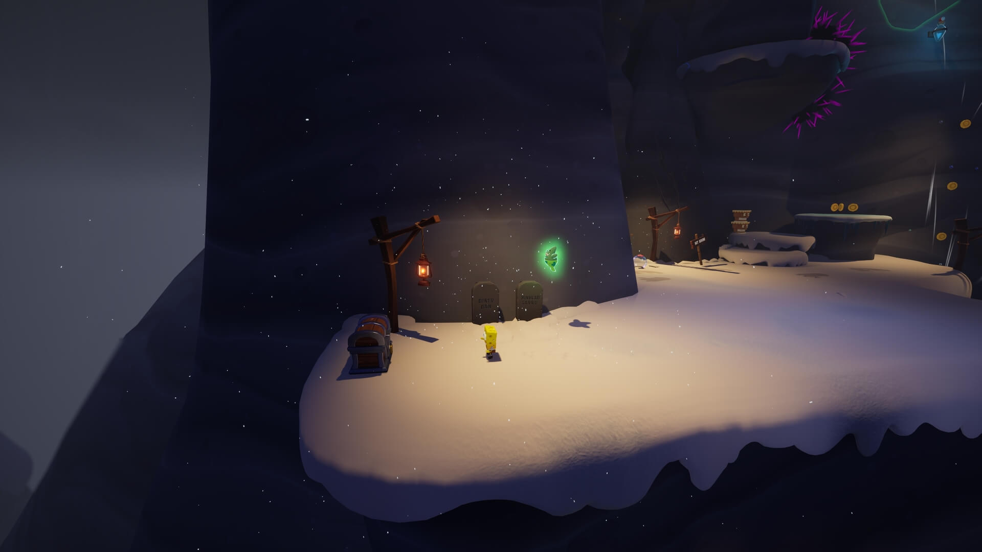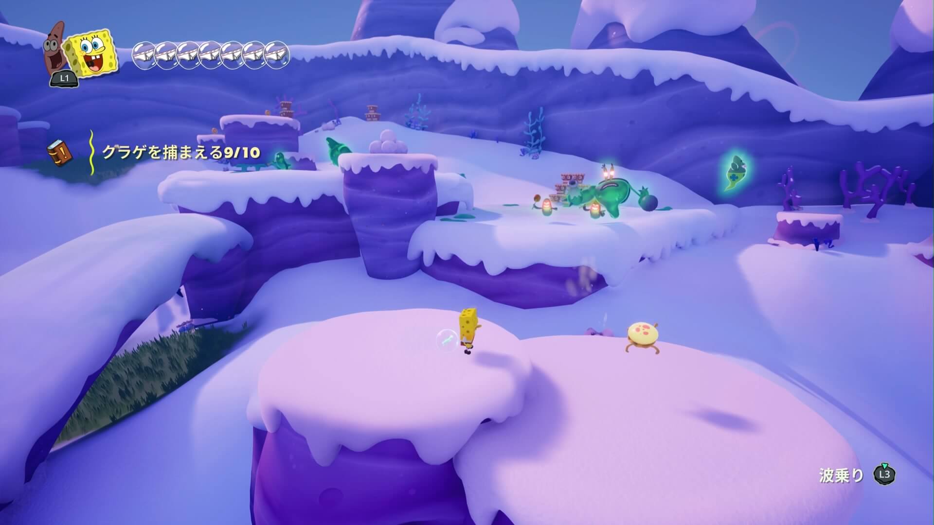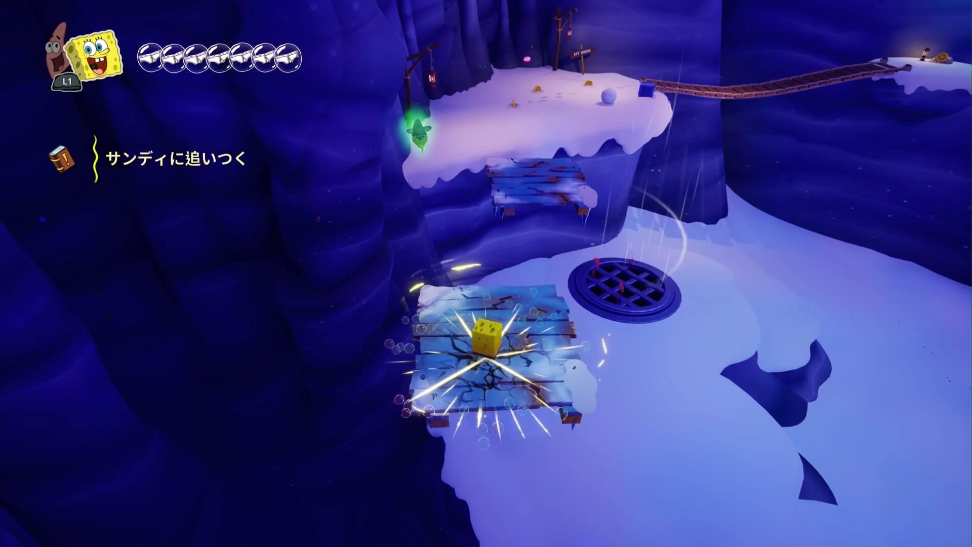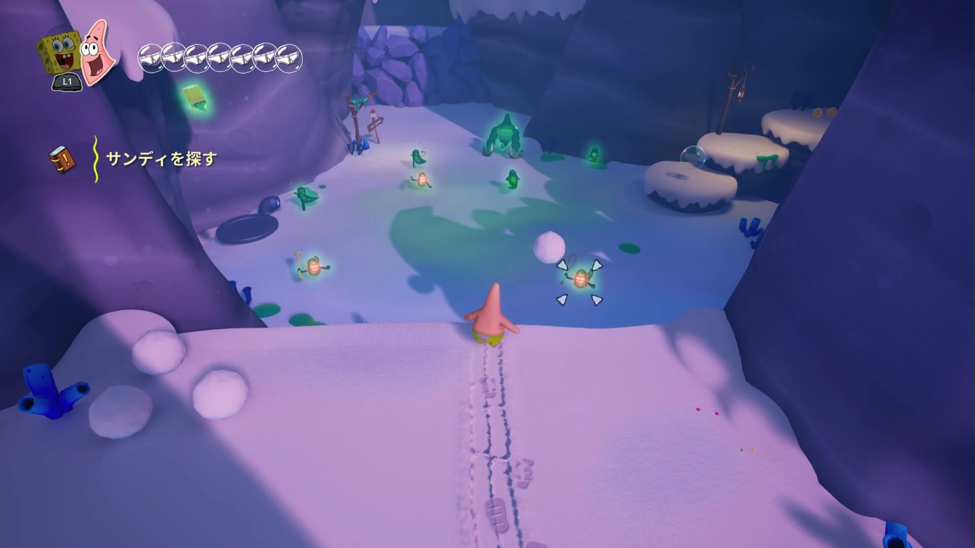 広い雪原を探索したくなるが、サンディに追い付いた後に発生する「ジャム集め」と同時に行うのが効率的。まずは下ってしまって問題ない。