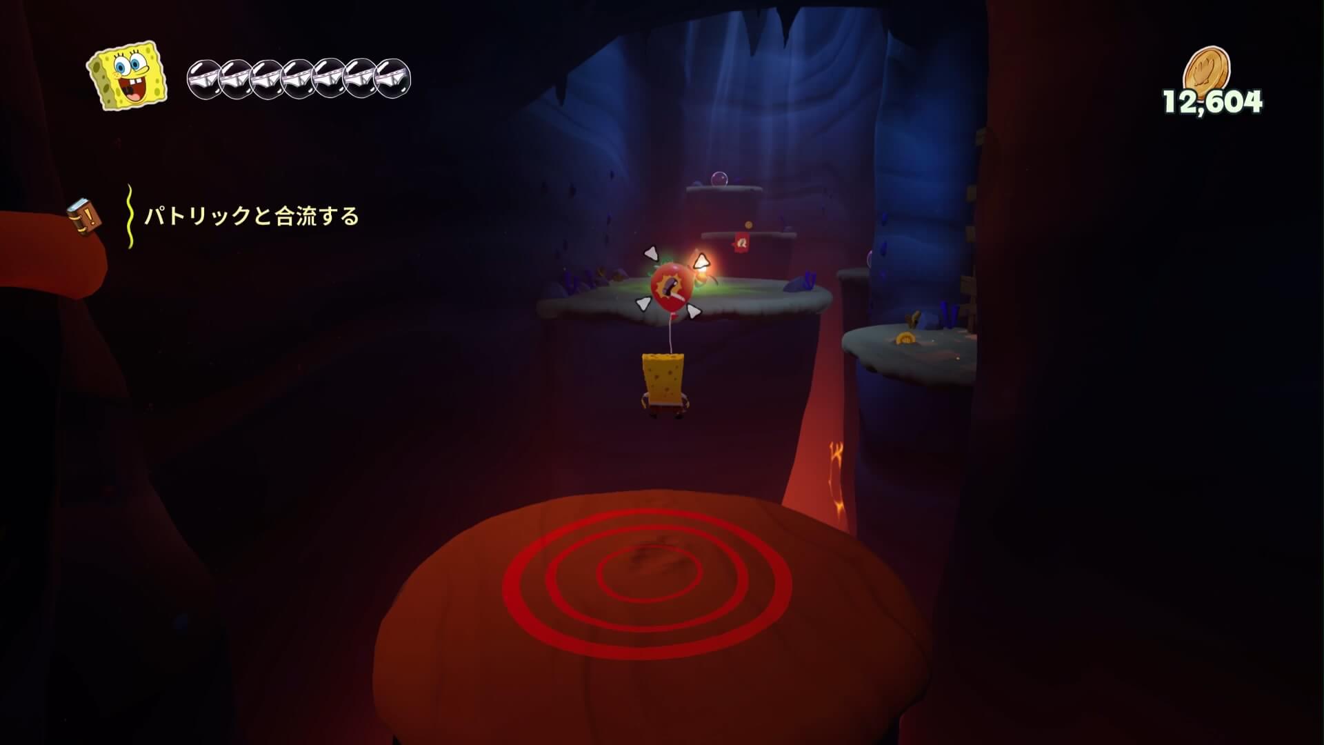 岩に乗って進むのは「赤い円」がある場所まで。岩を乗せるとゲートが開く仕組み。この先は「鍾乳石」の落下ポイントが多数あるので、地面が赤く光ったら範囲外に逃れよう!少しでも範囲の外の出れば大丈夫!