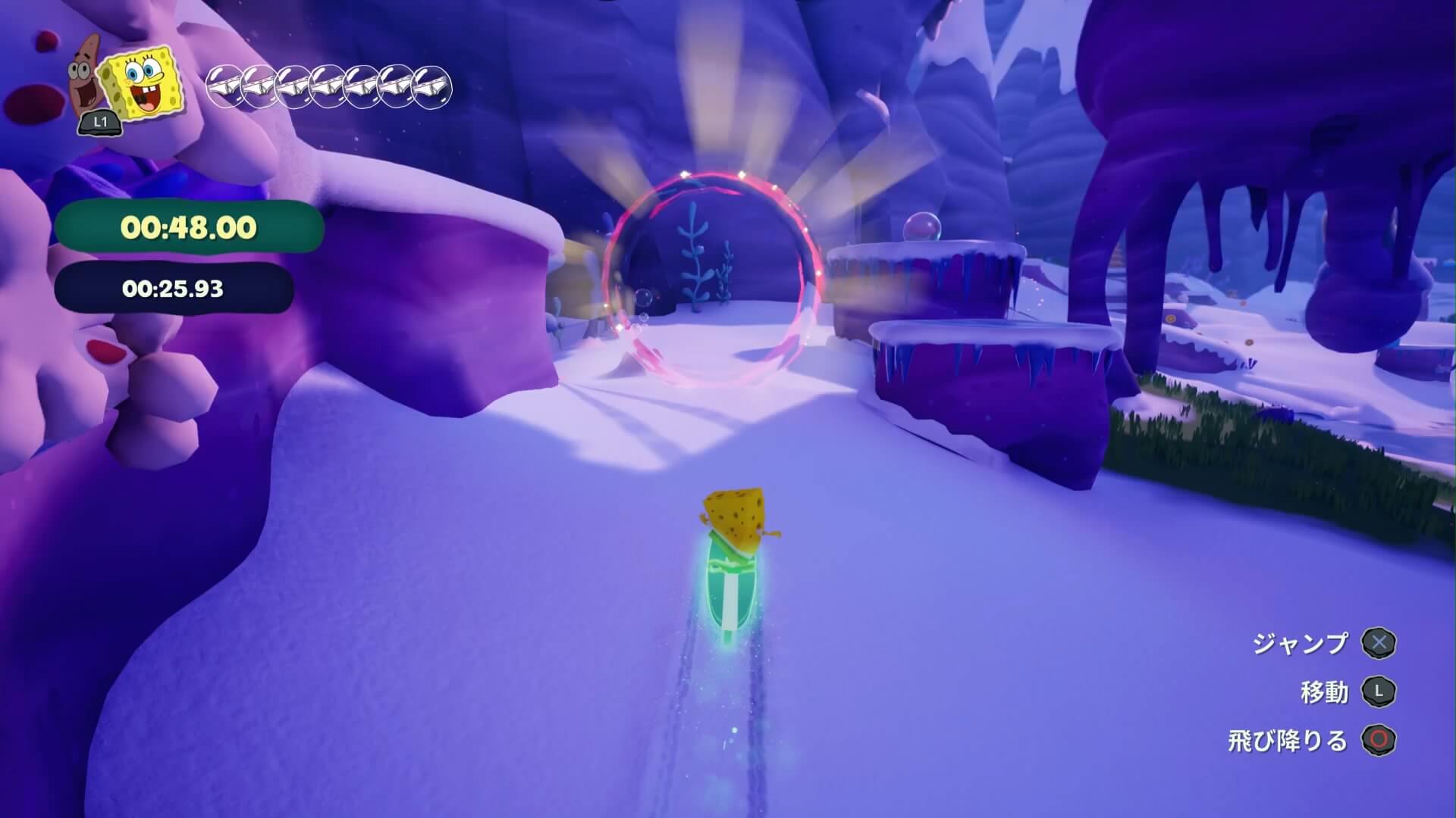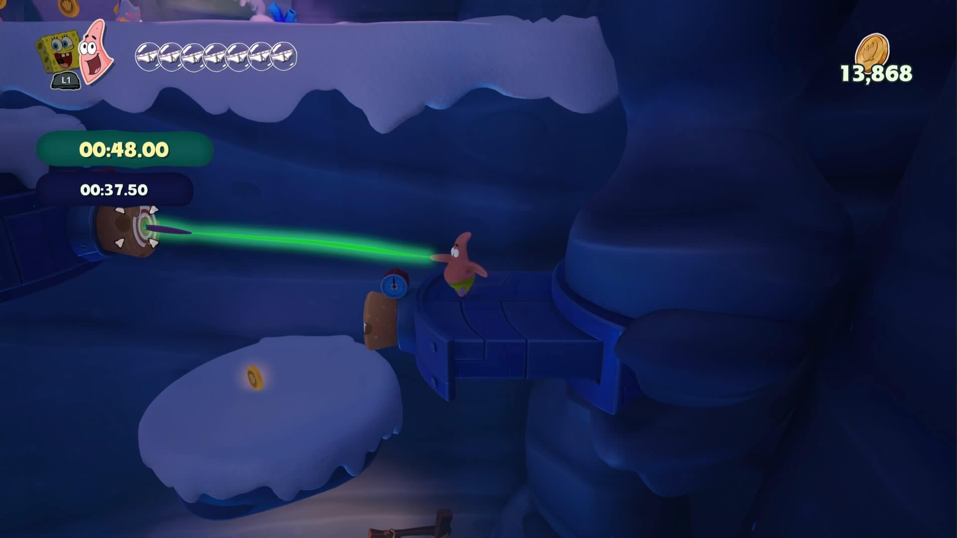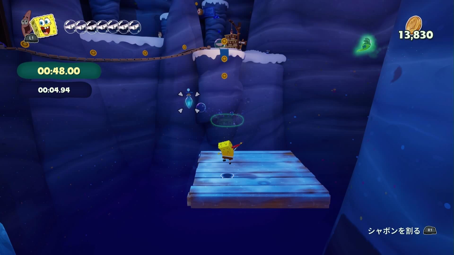 最初は「スポンジ・ボブ」でスタート。次に「パトリック」に交代というように、交互に専用ギミックが用意されている。最低でも「3回キャラ切り替え」を行うので「スムーズなキャラ切り替え」も重要になる。