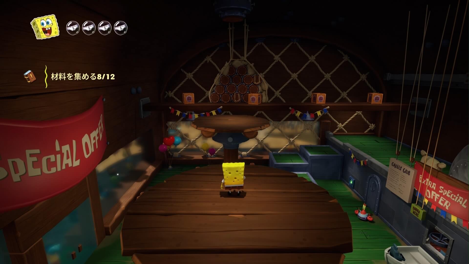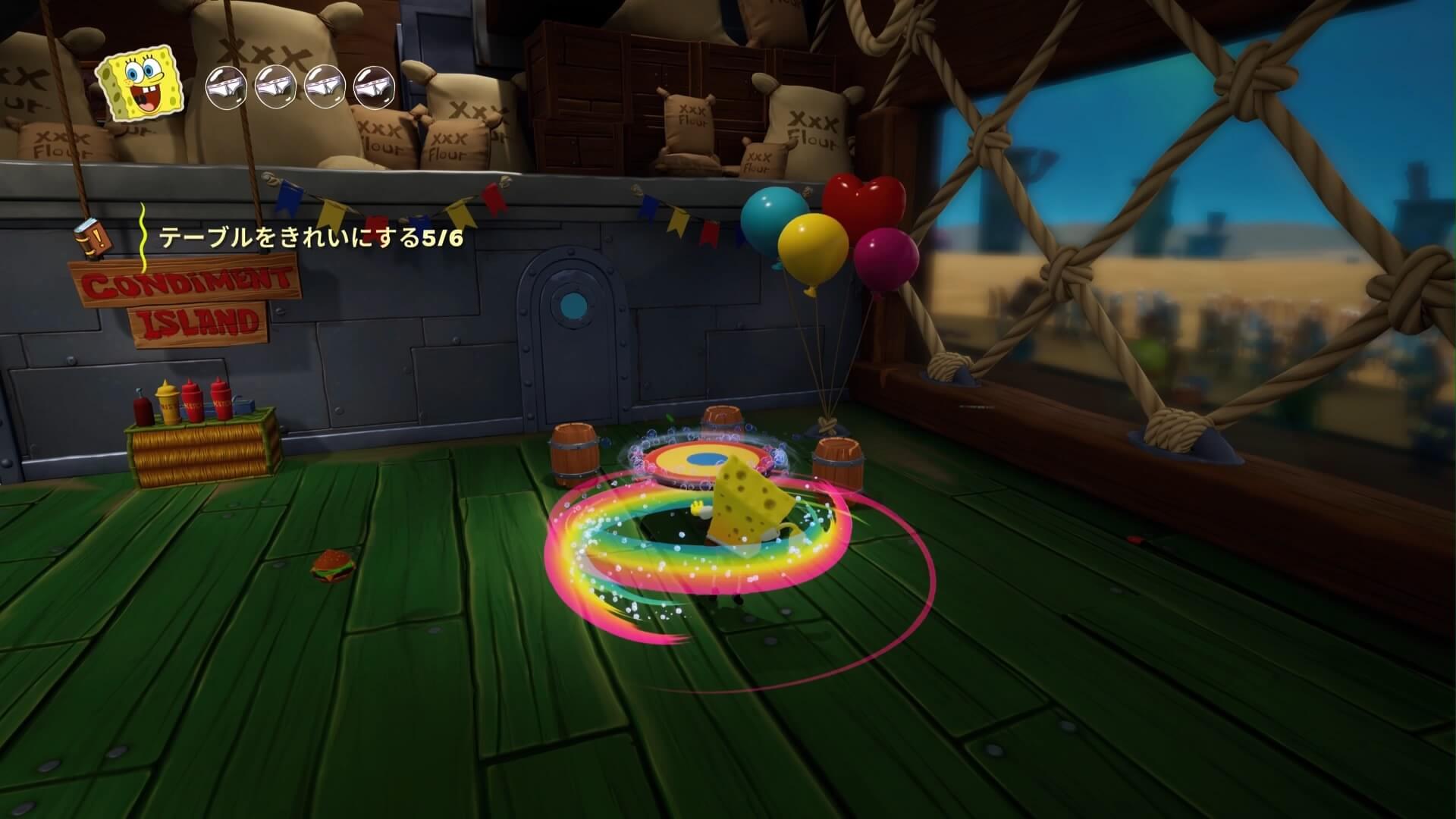 ストーリークエストを進めながら「スポンジ・ボブ」の基本操作を覚えられるようになっている。難しい操作はないので、ここで基本を身に付けておこう!